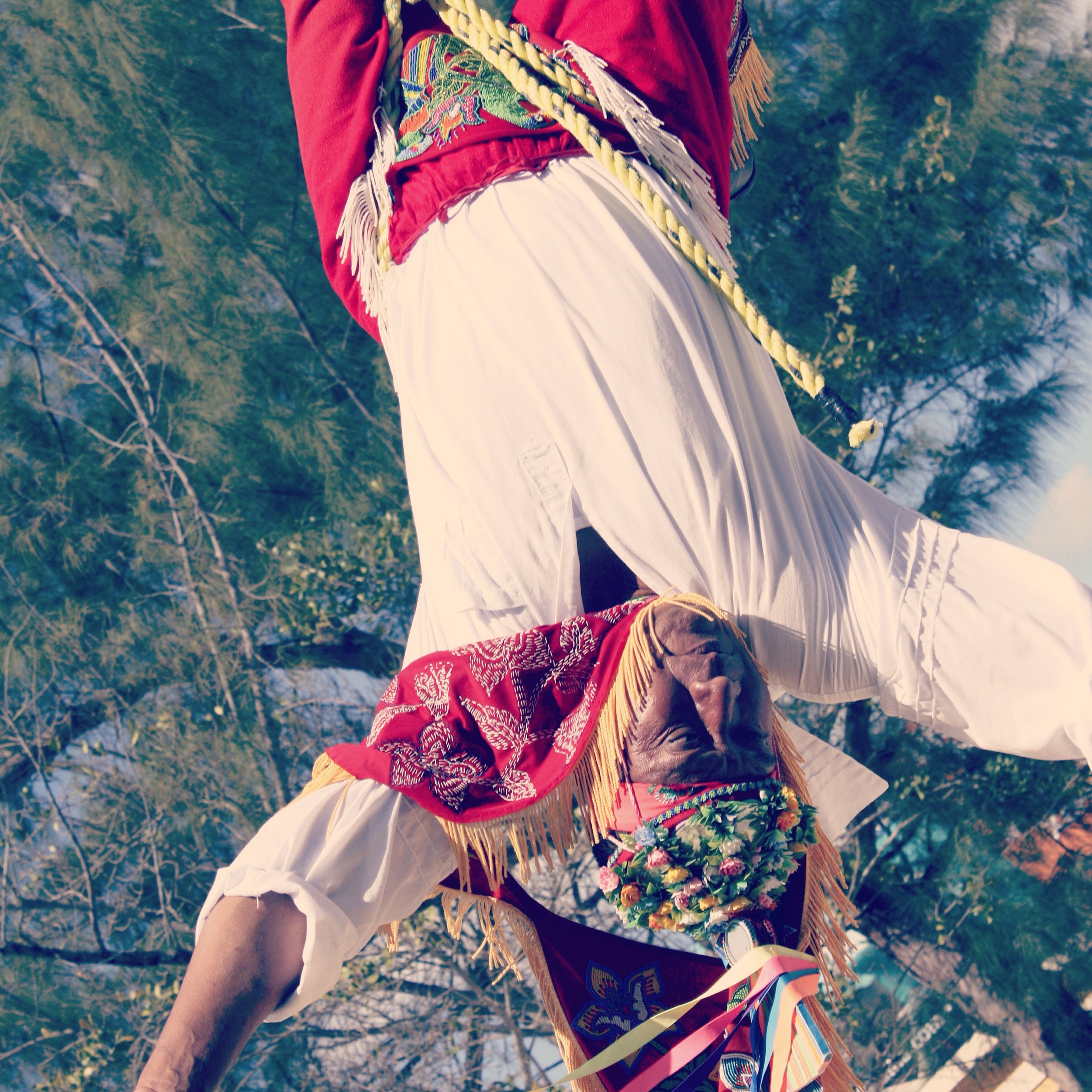 A performer at the base of the Tulum ruins.
